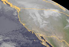 Auf dem heutigen Satellitenfoto ist ein ausgeprägtes Tief zu erkennen, das in weiten Teilen im Nordwesten der USA für dichte Wolken und häufig für Regen oder Schnee sorgt.