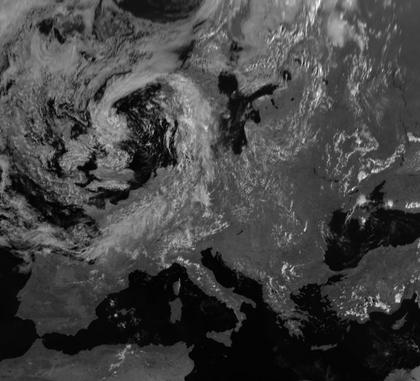 Auf dem Satellitenbild ist sehr schön das Tief 'Xenia' im Nordwesten Europas zu erkennen. Deutlich treten die Wolken des Frontensystem hervor. Über Osteuropa befindet sich das Hoch 'Edlef'