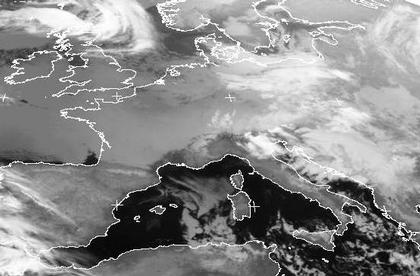Von Irland über England und Frankreich bis in den Westen und Süden Deutschlands breitet sich Schichtbewölkung aus. Diese Gebiete liegen im Einflussbereich des Hochs 'Frieda' mit seinem Zentrum westlich von Irland. Die dichten Wolken über Polen gehören zu einem Tief über Osteuropa, und sorgen dort noch für zeitweilige Schneefälle. Zwischen Schottland und Norwegen sind die Ausläufer des Tiefs 'Gerhard' zu erkennen. Dieses Tief sorgt heute in Schottland für Regen.
