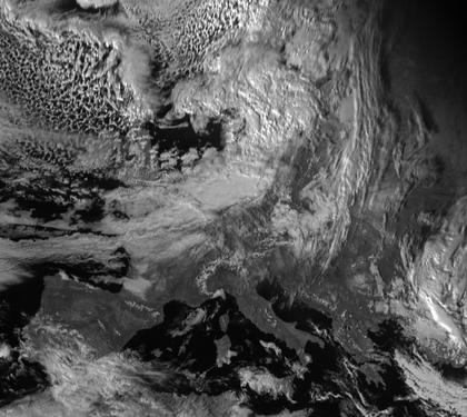 Nördlich der Britischen Inseln befindet sich mit mit seinem Zentrum das Tief 'Wilfried'. Seine Front überstreicht die Britischen Inseln und bringt dichte Wolken und Regen. Über dem Europäischen Nordmeer befindet sich Tief 'Volker' Es bringt Nord- und Mitteleuropa dichte Wolken und Regen oder Schnee. Freundlicher ist es unter Hochdruckeinfluss im Mittelmeerraum und unter Einfluss von Hoch 'Janina' mit Zentrum am Südural.