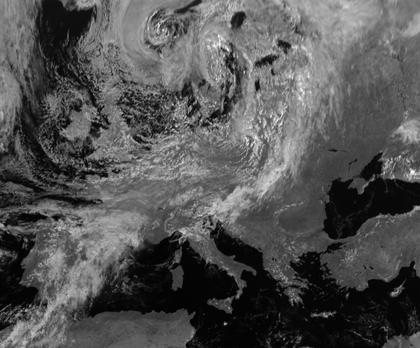 Tief 'Hiltrud' befindet sich mit seinem Zentrum über der Skandinavischen Halbinsel. Ansonsten ist es in Europa unter Hochdruckeinfluss meist aufgelockert bewölkt.