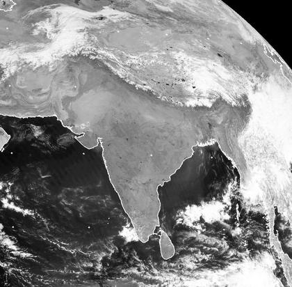 Die Regenzeit ist in Indien mittlerweile eindeutig beendet. Man findet kaum noch Wolken über dem Subkontinent. Wolken tropischer Schauer und Gewitter liegen nur weiter im Osten über Südostasien. Ein kleines Tief bringt Wolken und Regen oder Schnee in den Norden Afghanistans.
