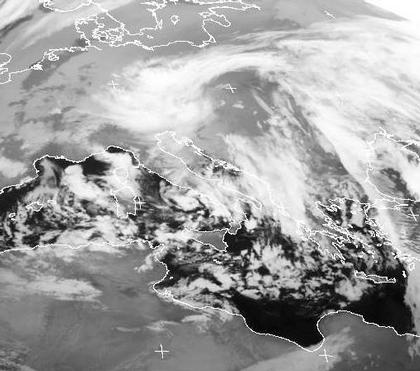 Das Tief 'Vincent' über Ungarn ist nur ein kleiner Teil eines viel größeren Tiefdruckwirbels mit Zentrum über Italien. Verantwortlich dafür ist ein Paket kalter Luft in höheren Luftschichten, um das sich dieses eindrucksvolle Tiefdruckgebiet gebildet hat. Über dem warmen Mittelmeer können mächtige Schauerwolken emporquellen.