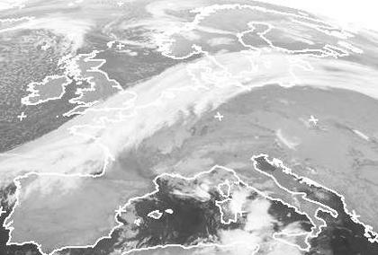 An der Grenze zwischen warmer Luft im Süden und kalter Luft im Norden hat sich über Europa ein langgestrecktes Frontensystem entwickelt, das sich als Wolkenband zwischen der Biskaya und dem Baltikum zeigt. Es bewegt sich über Deutschland mit Regen nach Süden. Dahinter strömt dann ab Morgen zunehmend kältere Luft nach Deutschland. (Bildquelle: NERC Satellite Receiving Station, Dundee University, Scotland, http://www.sat.dundee.ac.uk/)