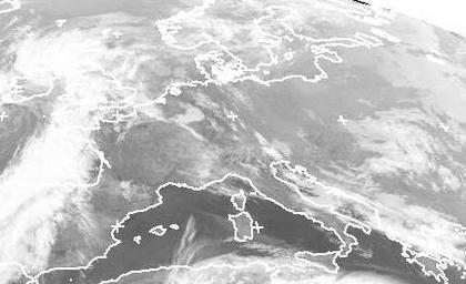 Auf dem Satellitenbild von Mittwoch früh sind über Mitteleuropa nur wenige Wolken zu erkennen. Grund dafür ist ein Hochdruckgebiet, dass sich über weite Teile Europas erstreckt. Am Rand dieses Hochs halten sich teils dichtere Wolken, wie zum Beispiel von Großbritannien bis Spanien oder über Griechenland. (Bildquelle: NERC Satellite Receiving Station, Dundee University, Scotland, http://www.sat.dundee.ac.uk/)