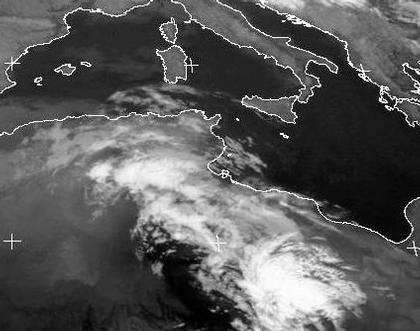 Ein kleines Tief sorgt heute in Algerien und Libyen für Regen. Seine Ausläufer reichen Libyen über Tunesien und Algerien hinweg bis hinaus aufs Mittelmeer. Es verlagert sich langsam nordwärts und löst sich dann auf.