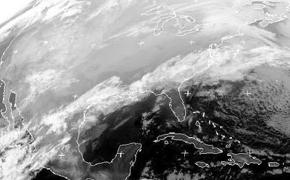 An der Luftmassengrenze zwischen kalter Luft über dem Landesinneren der USA und warmer Luft an der Golfküste und im Südosten liegt ein langes Wolkenband. Es erstreckt sich von Nordmexiko bis nach Virginia. Hier kommt es zu teils kräftigen Regenfällen oder auch Gewittern. Weiter nördlich liegt dagegen nur gebietsweise Hochnebel. (Bildquelle: NERC Satellite Receiving Station, Dundee University, Scotland, http://www.sat.dundee.ac.uk/)