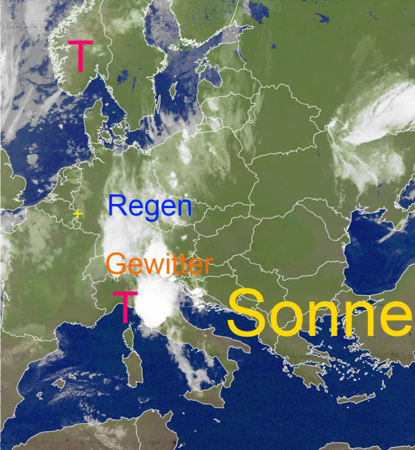 Über Gebieten Italiens und den Alpen haben sich mächtige Gewittercluster gebildet.