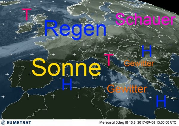 Viel Sonne findet man noch über Spanien und dem westlichen Mittelmeerbereich.