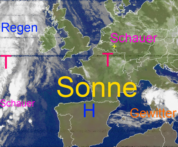 Sonst gibt es über dem Europäischen Kontinent aber auch größere wolkenfreie Gebiete mit reichlich Sonnenschein.