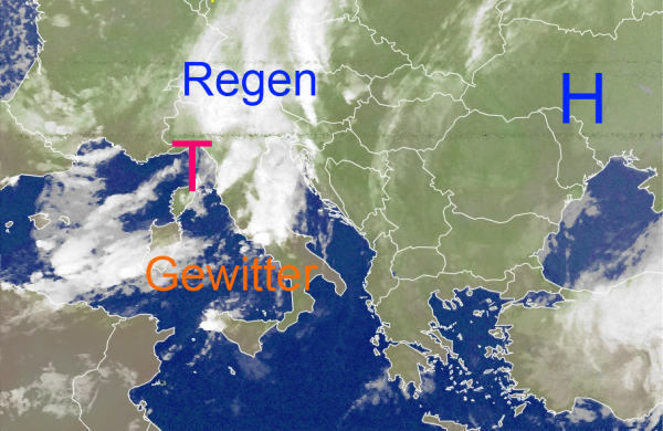 Ein Tief über dem Golf von Genua sorgt im Mittelmeerbereich für Schauer- und Gewitterentwicklung. Ein kräftiges Unwetter setzte dabei Teile Roms unter Wasser. Dabei fielen stellenweise bis zu 60 Liter Regen innerhalb kurzer Zeit. Auch heute und morgen drohen über Italien, der Adria und dem westlichen Balkan noch Unwetter.