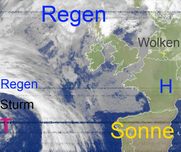 Draußen über dem Atlantik wirbelt ein Sturmtief. Dieses Sturmtief wandert Nordostwärts und gewinnt ab Donnerstag Einfluss auf unser Wetter. Bis Freitag zieht es nach Skandinavien und bringt uns von Norden her den Winter zurück.