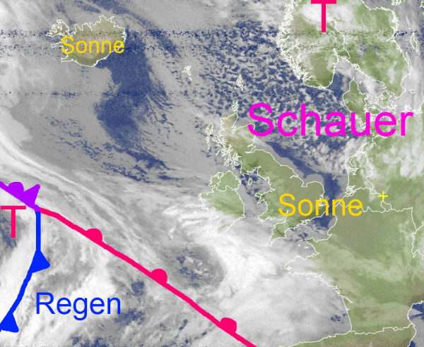 Das Frontensystem über dem Atlantik verheißt nichts Gutes. Diese kompakten Wolken werden uns morgen von Frankreich her erreichen, dabei fällt zunächst wieder kräftiger Schnee mit erheblichen Verkehrsbehinderungen. Hinter der Warmfront geht dieser jedoch meistens in Regen über. Da es auch am Montag vor allem im Südwesten unseres Landes zu reichlich Regen kommen kann, wird an kleineren und mittleren Flüssen bei gleichzeitiger Schneeschmelze das Thema Hochwasser aktuell.