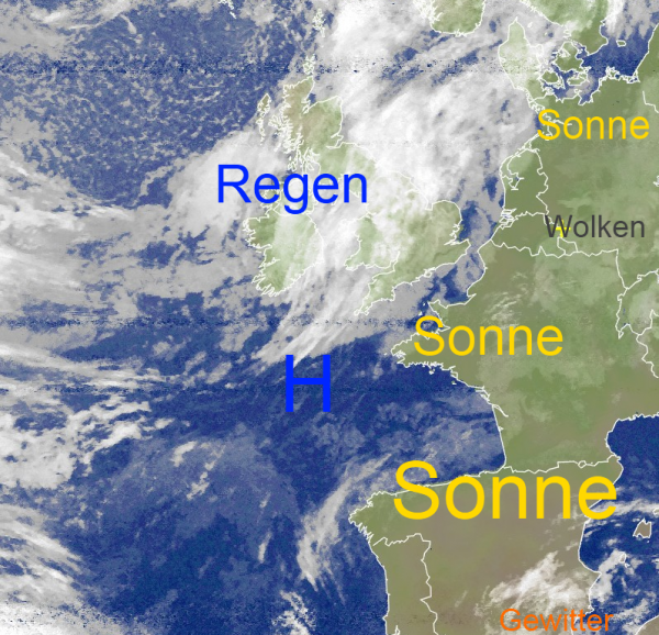 Über dem Europäischen Festland haben sich durch die länger werdenden Nächte und in der feuchteren Luft schon stellenweise Frühnebelfelder und hartnäckige tiefhängende Wolken gebildet, die es der Sonne erschweren sich durchzusetzen. Heute strahlt sich häufig im Norden unseres Landes, über Teilen von Frankreich und in großen Bereichen von Spanien.