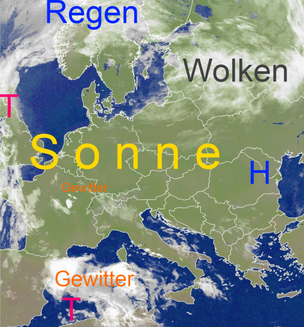 Strahlend blauer Himmel, viel Sonne und Temperaturen von zum Teil 30 Grad und mehr, so präsentiert sich das Wetter zur Zeit über Mitteleuropa. Gegen Abend können allerdings einige Schauer- und Gewittercluster von Frankreich in den Südwesten unseres Landes ziehen.