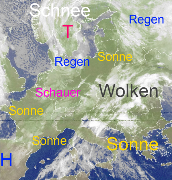 Das Tief über Schweden sorgt für wechselhaftes Wetter über Mitteleuropa. Dabei wechseln sich etwas Sonne und Regen- bzw. Schauerwolken munter miteinander ab.