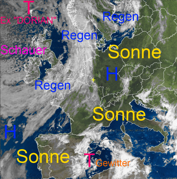 Der Ausläufer des Tiefs von Ex Hurrikan "DORIAN" hat den Nordwesten unseres Landes mit seinen Regenwolken erreicht. Fürchten müssen wir uns davor aber nicht mehr, da ihm bereits die Luft ausgegangen ist. Lediglich an den Küsten und auf den Insel kann der Wind stark auffrischen.