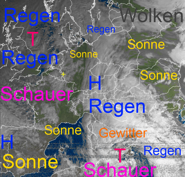 Wegen der beiden Tiefs präsentiert sich das Wetter sowohl über Westeuropa, als auch im Mittelmeerbereich ziemlich unbeständig und ungemütlich. Speziell über Südeuropa drohen kräftige Regenfälle, Schauer und auch teilweise Gewitter.