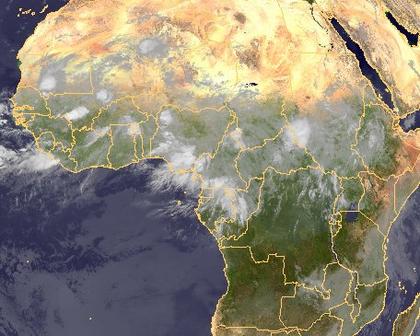 Über dem zentralen Afrika haben sich jahreszeitlich bedingt Schauer und Gewitter entwickelt.