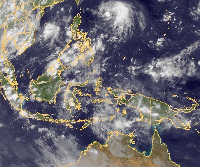 Schauer und Gewitter über Indonesien und Neuguinea