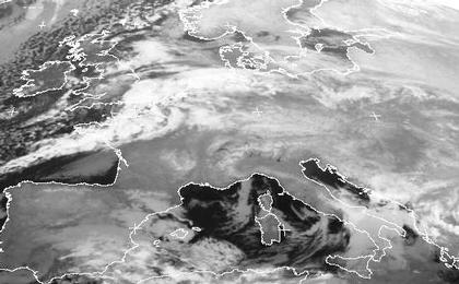 Die Warmfront des Tiefs 'Claus I' mit seinem Zentrum über Süd-England erstreckt sich auf dem Satellitenbild von heute morgen von der Englischen Südostküste über die Nordsee bis nach Norddeutschland. Dort wird sie im Laufe des Tages für zum Teil kräftigen Schneefall sorgen. Die Kaltfront des Tiefs verläuft von der Bretagne über die Biskaya bis hinaus auf den Atlantik. Sie sorgt heute in Frankreich für Schnee oder Schneeregen.