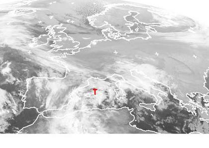 Ein kleines Tief über den Balearen sorgt im Mittelmeer von Spanien bis zur Adria für teils dichte Wolken und etwas regen, im Norden von Italien fällt teils auch Schnee. Sonst ist es in Europa unter Hochdruckeinfluss teils heiter, teils auch trüb, aber weitgehend trocken. (Bildquelle: NERC Satellite Receiving Station, Dundee University, Scotland, http://www.sat.dundee.ac.uk/)
