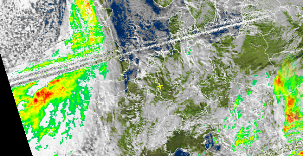 Das Satellitenbild zeigt die Schneewolken von Hamburg und Niedersachsen heute Mittag. Auch über Ostdeutschland liegen dichte Wolken mit etwas Regen und Schneeregen. Über den Britischen Inseln liegen dichte kompakte Wolken eines Tiefs mit viel Regen. Diese erreichen morgen Deutschland von Westen her mit Schmuddelwetter. Es wird nass und kalt und ab 400 m fällt Schnee.