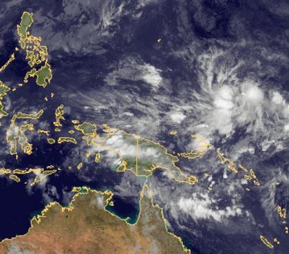 Auf dem Satellitenbild sind die starken Schauer und Gewitter der innertropischen Konvergenzzone über Neuguinea und dem Westpazifik erkennbar.
