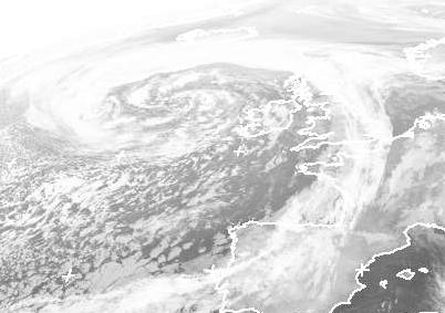 Das Sturmtief 'Ornela' westlich der Britischen Inseln ist auf dem Satellitenbild von Montag früh gut zu erkennen. Seine Kaltfront sorgt heute für teils kräftige Schauer von Großbritannien über Westfrankreich bis Portugal. (Bildquelle: NERC Satellite Receiving Station, Dundee University, Scotland, http://www.sat.dundee.ac.uk/)