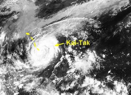Der tropische Sturm 'Kai-Tak' über dem Südchinesischen Meer hat sich zu einem Taifun mit Windgeschwindigkeiten von 120, in Böen bis 150 km/h entwickelt, er zieht unter Verstärkung nach Nordwesten, überquert dabei die Paracel-Inseln und trifft voraussichtlich am Mittwoch auf die vietnamesische Nordostküste, kräftige Regenfälle sind auch auf der chinesischen Insel Hainan zu erwarten.