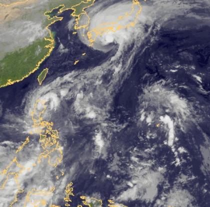 Der tropische Wirbelsturm 'Melor', der in den letzten Tagen auf Japan zuzog, hat sich deutlich abgeschwächt. Es ist zwar noch die typische Struktur des Taifuns erkennbar, jedoch kein Auge mehr. Im Bereich von 'Melor' werden noch Windgeschwindigkeiten von 160 km/h erreicht.