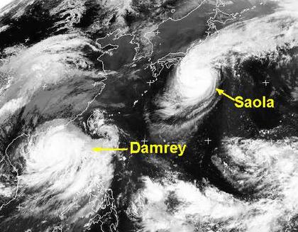 Der Taifun „Saola“ streift heute und morgen mit Windgeschwindigkeiten von 160, in Böen bis 200 km/h die Südostküste Japans und zieht dann weiter nach Nordosten ab.