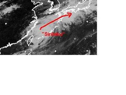 Der Taifun 'Sinlaku' befindet sich auf dem Satellitenbild von Montag früh nördlich von Taiwan. Zurzeit erreicht er mittlere Windgeschwindigkeiten von 120, in Böen 148km/h. Berechnungen zufolge soll er sich nur leicht abschwächen und in nordöstlicher Richtung südlich an Japan vorbeiziehen. Sein Endziel ist aber noch unklar. (Bildquelle: NERC Satellite Receiving Station, Dundee University, Scotland, http://www.sat.dundee.ac.uk/)