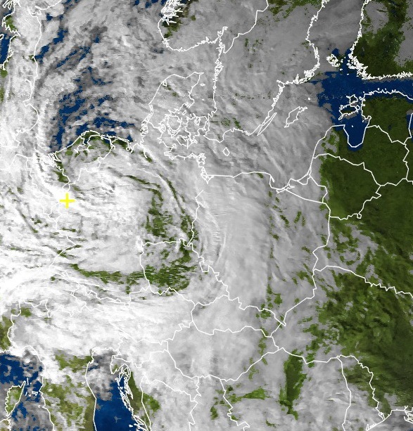 Ein Tiefdruckgebiet ist über Mitteleuropa wetterbestimmend. Es kreist über Mitteleuropa in den nächsten Tagen. Dabei bringt es nasskaltes Herbstwetter nach Deutschland. Sogar bis 700 m runter fällt Schnee und Schneeregen. Am Wochenende wird es milder und trockener.