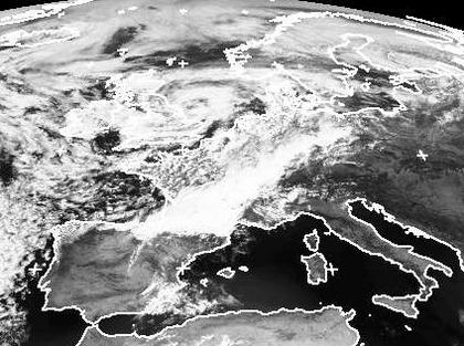 Tief 'Gisela' mit Zentrum über Großbritannien und der Nordsee bestimmt das Wetter in Mittel- und Westeuropa. Ein Ausläufer des Wolkenwirbels verläuft bis nach Südschweden. Von Südfrankreich bis nach Süddeutschland erstreckt sich eine Luftmassengrenze zu wärmerer Luft im Südosten. Hier haben sich unter dem Tiefdruckeinfluss dichte Regenwolken gebildet. Von Nordwestfrankreich bis nach Norddeutschland findet man zwischen den vielen Wolken dagegen auch Auflockerungen.