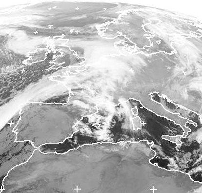 Das Sturmtief 'Martha' über den Britischen Inseln lenkt ein Frontensystem nach Westen. Die Wolken erstrecken sich über der Nordsee und Nortddeutschland über Nordfrankreich bis nach Nordspanien. Mit einer südwestlichen Strömung führt es zudem milde Luft nach Deutschland. (Bildquelle: NERC Satellite Receiving Station, Dundee University, Scotland, http://www.sat.dundee.ac.uk/)