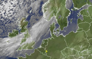 Ein Tief von den Britischen Inseln nähert sich von Nordwesten. Schneeregen kommt nach Deutschland. Mehr Satellitenbilder finden Sie hier.