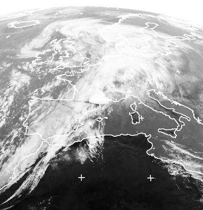Tief 'Nina' bei Schottland bestimmt mit seinem ausgedehnten Wolkengebiet das Wetter in weiten Teilen Europas. Auch nach Marokko bringt es teils kräftige Regenfälle. In Deutschland dagegen regnet es vor allem im Westen und Norden. Richtung Alpen ist es teils auch aufgelockert. (Bildquelle: NERC Satellite Receiving Station, Dundee University, Scotland, http://www.sat.dundee.ac.uk/)