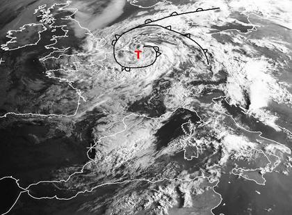 Das Tief 'Quirinus' liegt auf dem Satellitenbild vom Mittwoch früh mit seinem Zentrum über Belgien. Es ist bereits deutlich okkludiert und dreht seine Bewölkung in einer Spirale immer weiter in das Zentrum herein, gleichzeitig fallen am Okklusionspunkt die meisten Niederschläge. Da sich der Komplex nur sehr langsam nach Westen weiterbewegt, konnte es in Nordrhein-Westfalen und in Süd-Niedersachsen stark und ergiebig regnen, teilweise sind Niederschlagsmengen bis 80 Liter auf den Quadratmeter in 24 Stunden gemessen worden. Nun wird 'Quirinus' sich nach Frankreich weiterbewegen und auch dort für Regen sorgen, in Deutschland bleibt feucht Luft zurück, in der sich Schauer und Gewitter bilden. (Bildquelle: NERC Satellite Receiving Station, Dundee University, Scotland, http://www.sat.dundee.ac.uk/)
