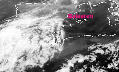 Über Südspanien baut sich zur Zeit ein kleines Tief auf, der sich nach Osten verlagert; es bringt hier noch kaum Niederschläge, am Samstag sorgt es für teils kräftigen Regen auf den Balearen.