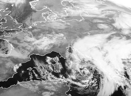 Das Satellitenbild zeigt ein dichtes Wolkenband dass sich längs der Adria von Slowenien und Ungarn bis nach Griechenland erstreckt. Dieses Wolkenband ist die Warmfront des Tiefs 'Vincent' mit seinem Kern direkt über dem Adriatischen Meer. Auf seiner Rückseite wird kalte und feuchte Luft aus Nordosten herbeigeführt. Durch diese Strömung stauen sich dichte Wolken am nördlichen Alpenrand und sorgen dort für länger anhaltenden Schneefall.
