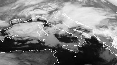 Der Ausschnitt zeigt ein Wolkenband das sich von den Balearen über Korsika und Italien bis nach Ungarn erstreckt. Es gehört zu Tief 'Vincent' mit seinem Kern über der Adria. Dieses Tief sorgt heute für starken Regen oder Schnee und viel Wind in Italien und auf dem Balkan.