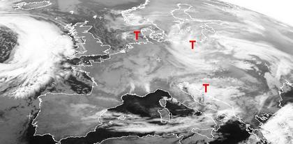 Tief 'Vitus' über der Nordsee, Tief 'Xerxes' über Polen und ein weiteres Tief über dem Balkan bestimmen zur Zeit das Wetter in weiten Teilen Europas mit vielen Wolken und zeitweiligen Niederschlägen, teils als Regen, teils als Schnee. Vor allem 'Xerxes' bringt heute und in den nächsten Tagen zum Teil kräftigen Regen oder Schnee in Polen. Auf der Iberischen Halbinsel sorgt Hochdruckeinfluss für ruhiges Wetter.