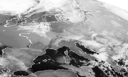 Das Hoch 'Frieda' westlich der Britischen Inseln sorgt für ruhiges Wetter in weiten Teilen Europas. Bis auf einzelne Nebel- oder Hochnebelfelder ist der Himmel meist wolkenlos. Auf dem Satellitenbild sind sehr gut die westlichen Alpen und die Pyrenäen zu erkennen. Über der Nordsee erstreckt sich ein Wolkenband. Es gehört zu Tief 'Gerhard', dessen Ausläufer Morgen Regen und Schnee nach Deutschland bringen.