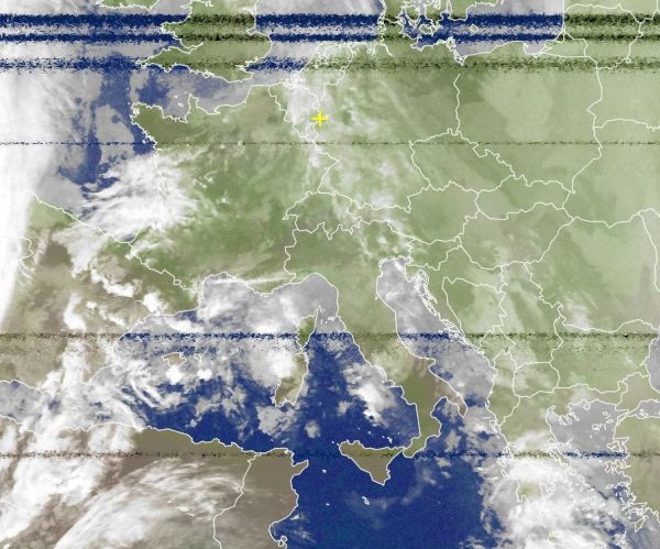 Auf dem Satellitenausschnitt von heute Nachmittag sind vom westlichen bis zum zentralen Mittelmeer viele Wolken zu erkennen, dabei sind auch einige kräftige Schauer- und Gewitterzellen (läuchtend weiß) sichtbar. Zu teils schweren Gewittern kam es bspw. auf den Balearen, aber auch auf Korsika.