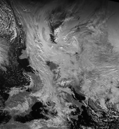 Vom westlichen Mittelmeer über die Frankreich und die Britischen Inseln bis nach Island sorgen Tiefs mit ihren Ausläufern für dichte Wolken. Weiter nach Osten hin bestimmt zwar vorwiegend Hochdruckeinfluss das Wetter, dennoch halten sich in der feucht-kalten Luft verbreitet noch dichte Wolken. Vor allem Gebirge sorgen für Auflockerungen. Ein großes wolkenarmes Gebiet ist durch die Südostströmung im Lee von Sauerland und Eifel entstanden, das sich von Nordrhein-Westfalen bis zur Rheinmündung erstreckt.