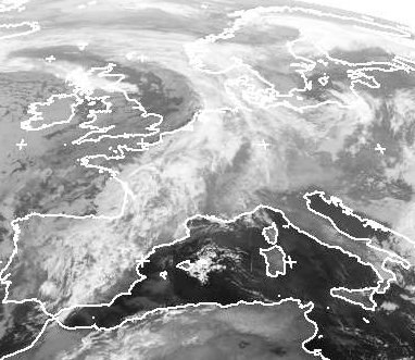 Tief 'Helene' über dem Nordatlantik schickt von Westen ein Wolkenband nach Deutschland. Es erstreckt sich auch über Norwegen und bis nach Spanien. Allerdings erkennt man darin auch viele Wolkenlücken. Auch Regen fällt nicht viel. Von Westen folgt hinter dem Wolkenband langsam ein Gebiet mit noch mehr Auflockerungen. Auch um die Ostalpen scheint oft die Sonne. Hier liegt Hoch 'Leo'. (Bildquelle: NERC Satellite Receiving Station, Dundee University, Scotland, http://www.sat.dundee.ac.uk/)