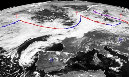 Eine deutliche Zweiteilung bei der Wolkenverteilung zeigt das Satellitenbild heute Nachmittag über Europa. Während der Norden durch eine Tiefdruckrinne mit dichten Wolken versorgt wird, bringt Hochdruckeinfluss von Spanien bis nach Südosteuropa nur wenige Wolken. Auch über Deutschland ergibt sich eine Zweiteilung, dabei wird mit einer westlichen Strömung an der Südseite feuchte Luft mit dichten Wolken nach Norddeutschland geführt. Zum Wochenende verstärkt sich der Hochdruckeinfluss aus Süden, sodass auch Norddeutschland wieder mit mehr Sonne rechnen kann. (Bildquelle: Copyrigt EUMETSAT, NERC Satellite Receiving Station, University of Dundee)
