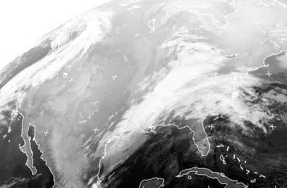 Während es über der Mitte des nordamerikanischen Kontinents nur gering bewölkt ist, erkennt man im Westen und Osten die Bewölkung von zwei Tiefdruckgebieten. Ein Tiefdruckgebiet über dem östlichen Pazifik bringt an der kanadischen Westküste sowie im Nordwesten der USA wechselhaftes Wetter, meist fällt Regen, in den Höhenlagen auch Schnee. Das Tief über dem Osten des Kontinents bringt im Süden und in Küstennähe meist Regen, weiter nördlich aber Schnee in den Osten der USA und nach Ontario sowie morgen auch nach Quebec. Dabei sind in den Bergen und um die großen Seen bei kräftigem Wind auch Schneeverwehungen möglich.