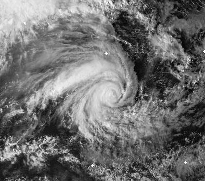 Mitten auf dem Indischen Ozean, fernab jeder Küste, liegt der Zyklon 'Hondo'. Er erreicht mittlere Windgeschwindigkeiten bis 120 km/h, in Böen auch 150 km/h. Er wird sich noch etwas verstärken. (Bildquelle: NERC Satellite Receiving Station, Dundee University, Scotland, http://www.sat.dundee.ac.uk/)